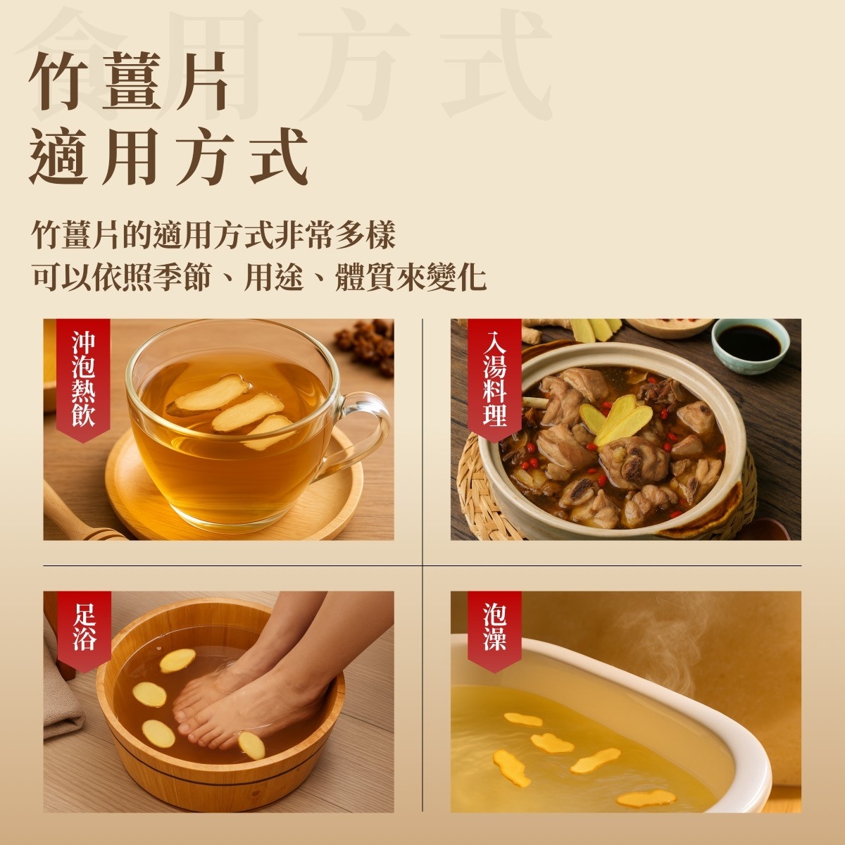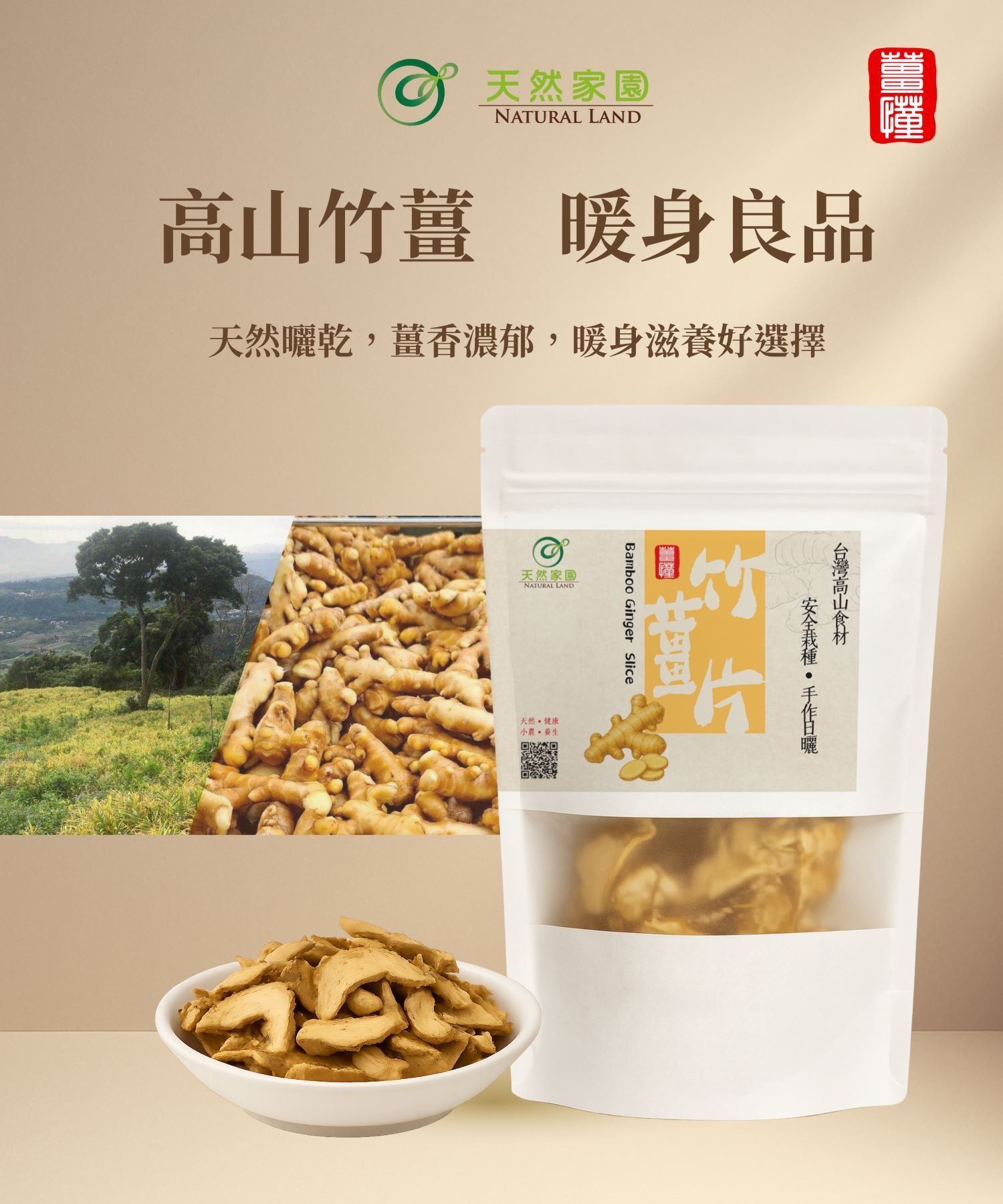 嚴選阿里山小農手作日曬竹薑,風味溫潤不嗆、暖身適補。天然在地食材,富含薑辣素與薑烯酚,可沖泡、入菜、直接食用或外用,四季皆宜的柔和暖薑日常