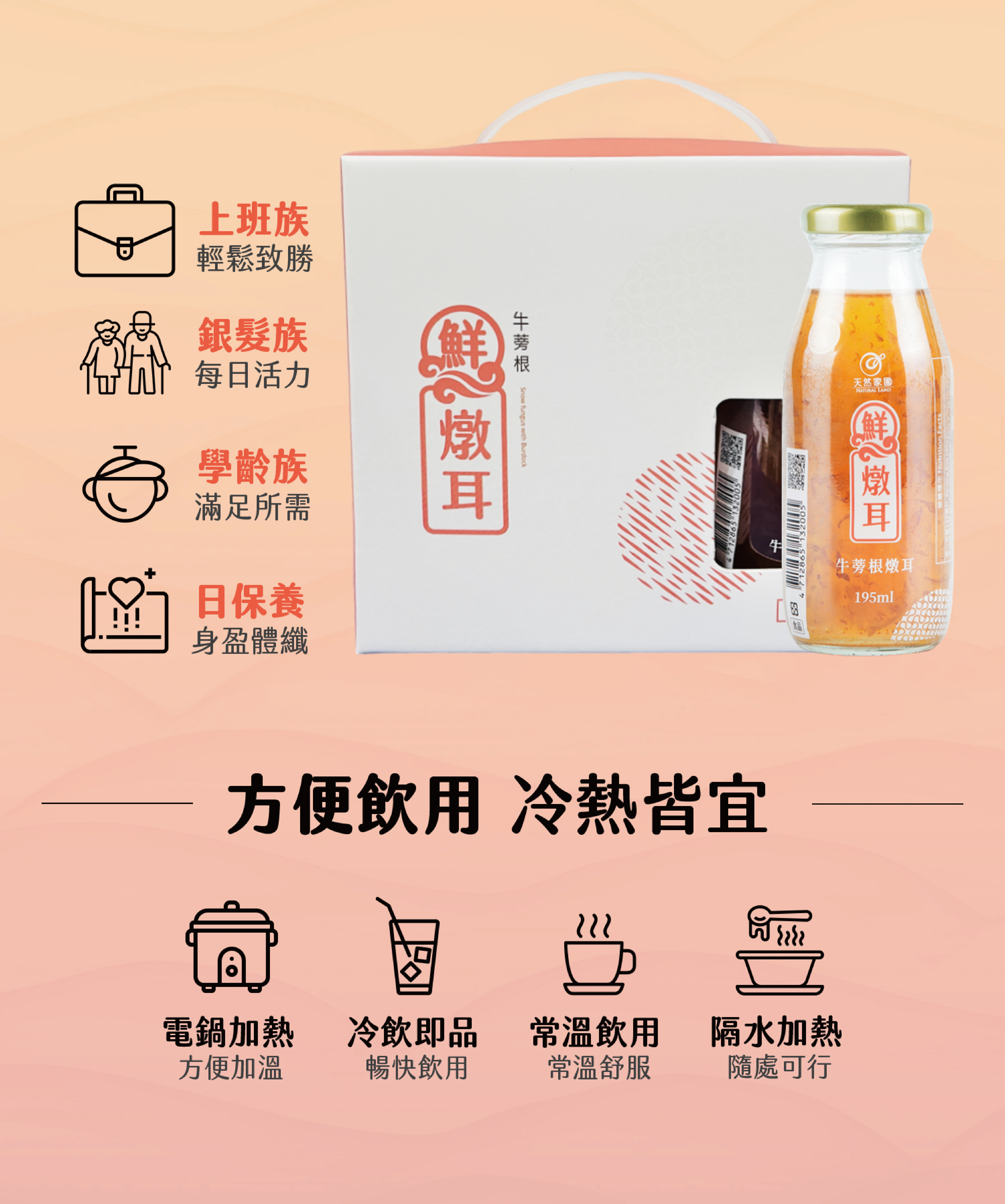 台灣在地新鮮白木耳與牛蒡熬煮 吃得到清脆木耳粒 通過SGS無農藥殘留檢驗 無重金屬含量,檢驗合格