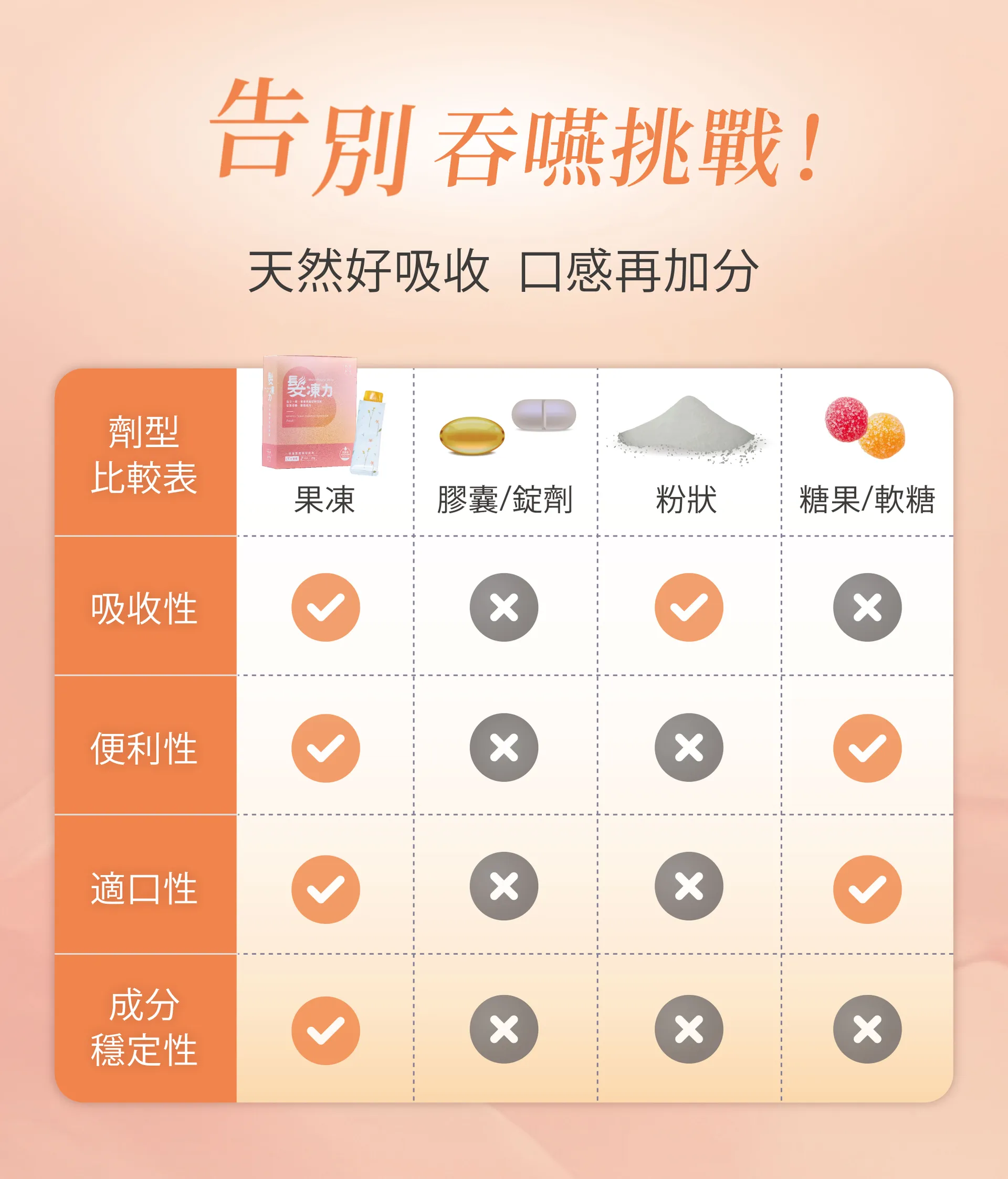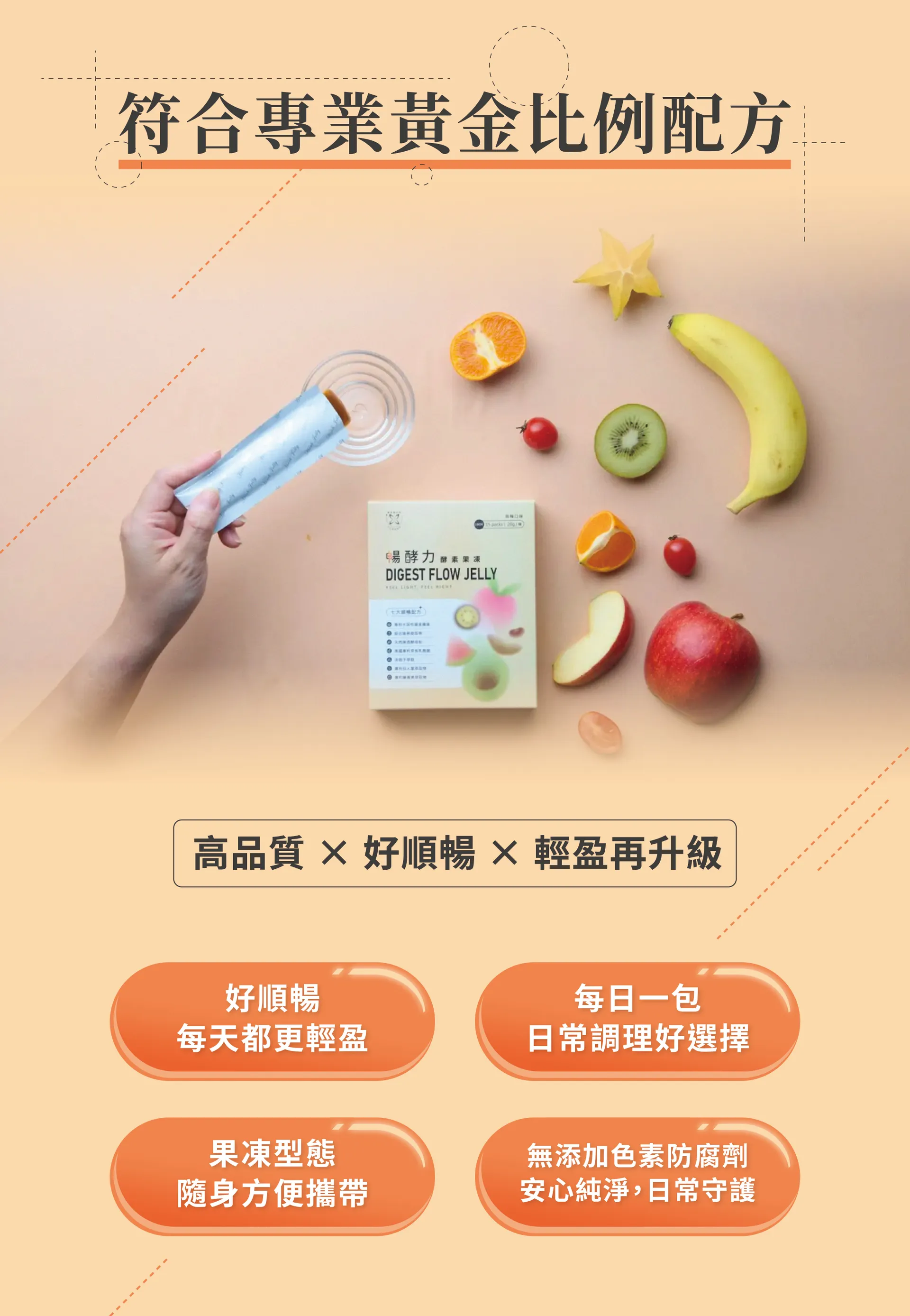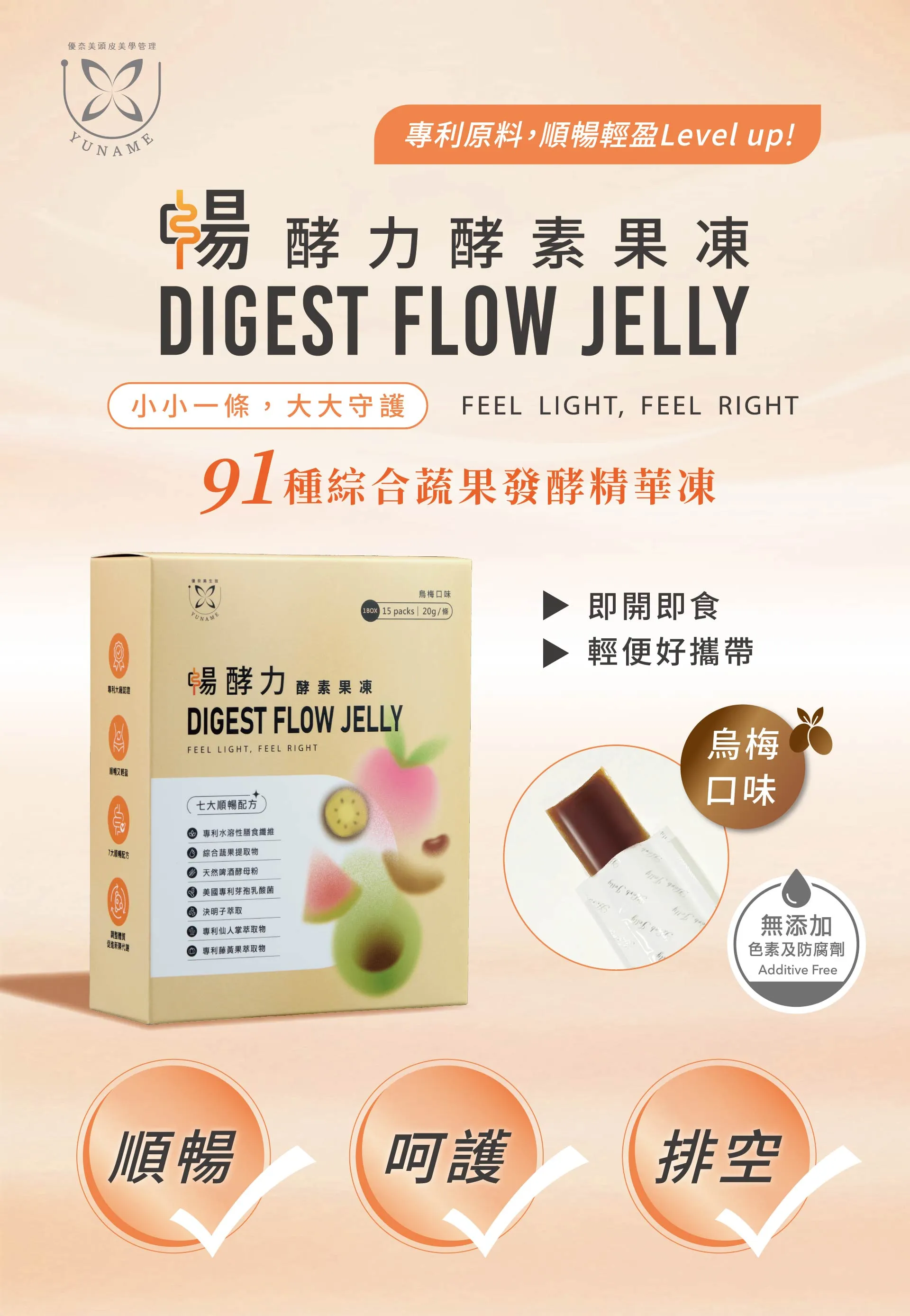 果凍條型態,無需配水,忙碌生活也能輕鬆享用。