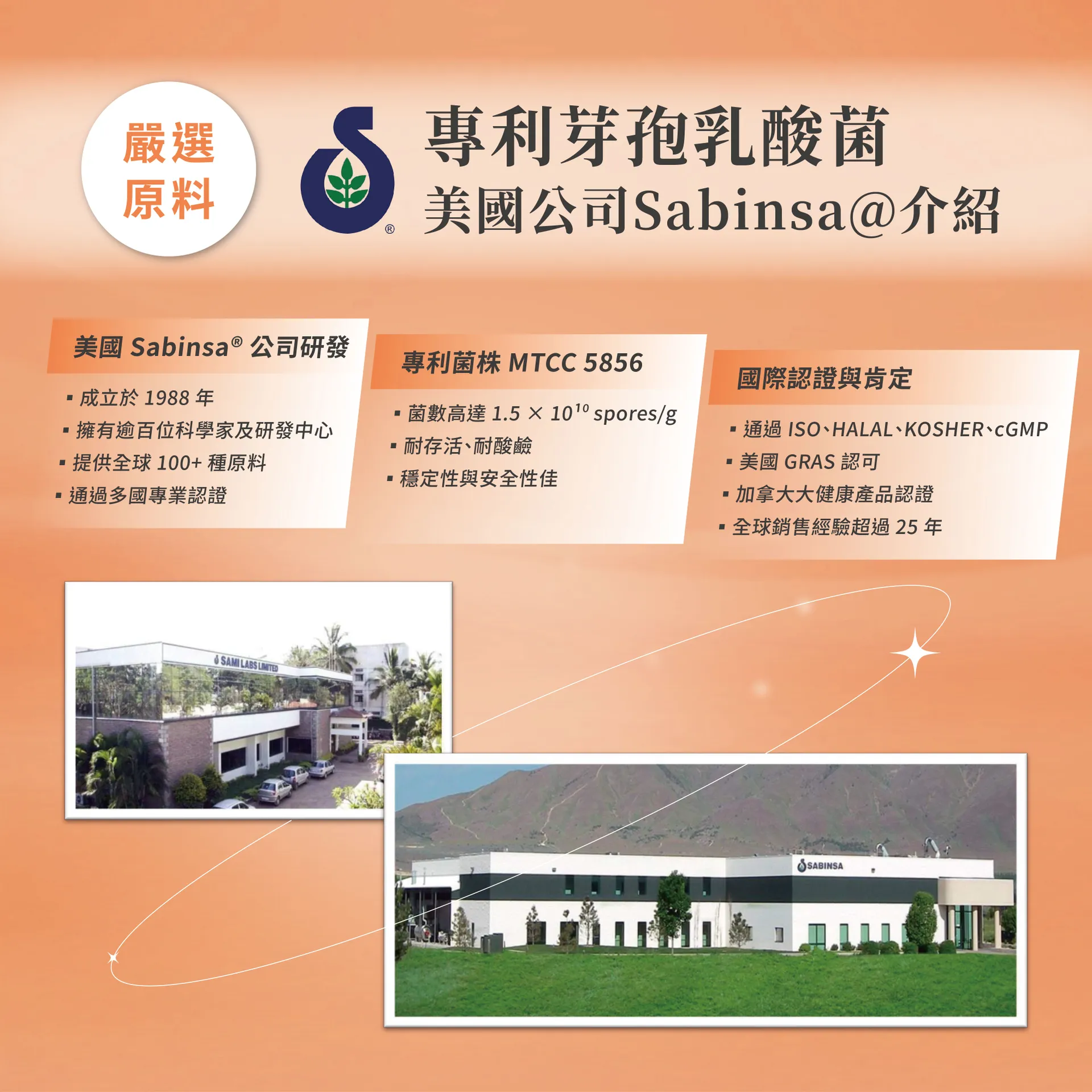 專利水溶性膳食纖維、綜合蔬果萃取物、天然啤酒酵母粉、美國專利芽孢乳酸菌、決明子萃取、專利仙人掌萃取物、專利藤黃果萃取物。