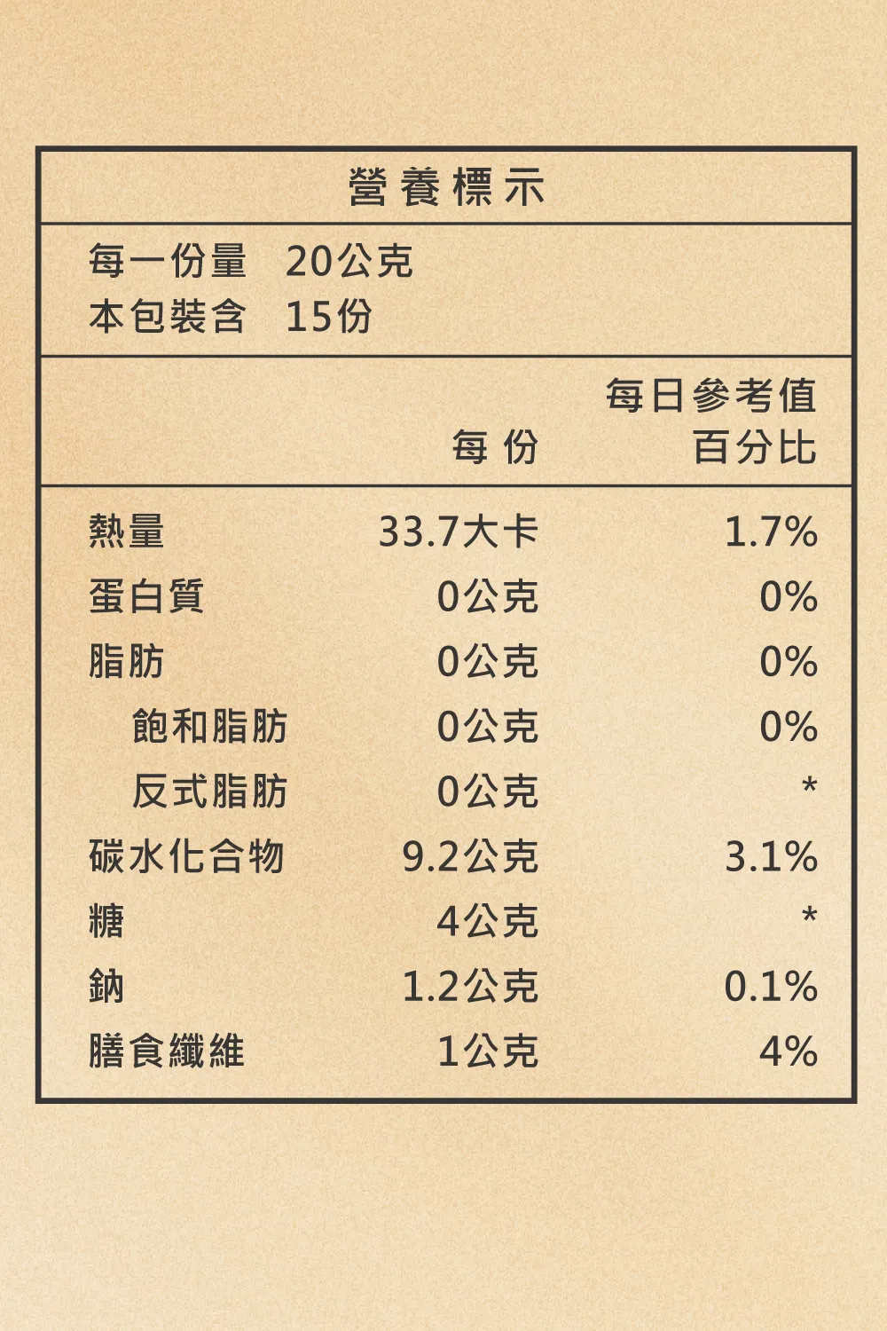 成分:純水、烏梅濃縮汁、異麥芽寡糖漿、D-山梨醇、烏梅提取物、決明子提取物、玉米來源可溶性纖維、果凍膠(洋菜粉、蒟蒻粉、刺槐豆膠、玉米糖膠、鹿角菜膠、氯化鉀、酸奶、蔬菜果發酵物(含糊精、昆布、裙帶菜、紫菜、香菇、檸馬鞭草、苦艾草、西番蓮、金盞草、大飛揚草、牛筋草、檸檬草、大茴香、馬黛茶、魚腥草、紫蘇、薰衣草、貓薄荷、洋甘菊、生薑、益母草、芭樂、丁香、鹹豐葉草、迷迭香、鹹燕麥片、玉米、大麥、豌豆、紅豆、小豆、小薏、薏仁、小肉豆、小肉豆、小肉豆、小肉豆、小肉豆、小肉豆、小薏仁、小肉豆、小肉豆、小肉豆、小肉豆、小肉豆、小肉豆、小肉豆、小肉豆、小肉豆、小肉豆、小肉豆、小碎肉豆、小肉豆仁。豆、炸玉米、黑麥、黑豆、鷹嘴豆、扁豆、糙米、鳳梨、香蕉、蘋果、木瓜、芭樂、哈密瓜、鱷梨、梅子、西印度櫻桃、檸檬、葡萄乾、芒果、楊桃、西瓜、腰果、桃核、奇異果、西洋梨、巴西莓、卡姆果、萊姆、玫瑰果橘子、樹莓、玫瑰柳果、橘子、水蜜桃、蘿蔔、高麗菜、蓮藕、牛蒡、菊芋、甘藷、南瓜、木薯、番茄、羽衣甘藍、青椒、紅甜菜、胡蘿蔔、長型南瓜)、芽孢乳酸菌、荷葉萃取物、天然啤酒酵母粉(含維生素B群)、檸檬酸、專利仙人掌萃取物、檸檬酸草黃果萃取物、檸檬酸